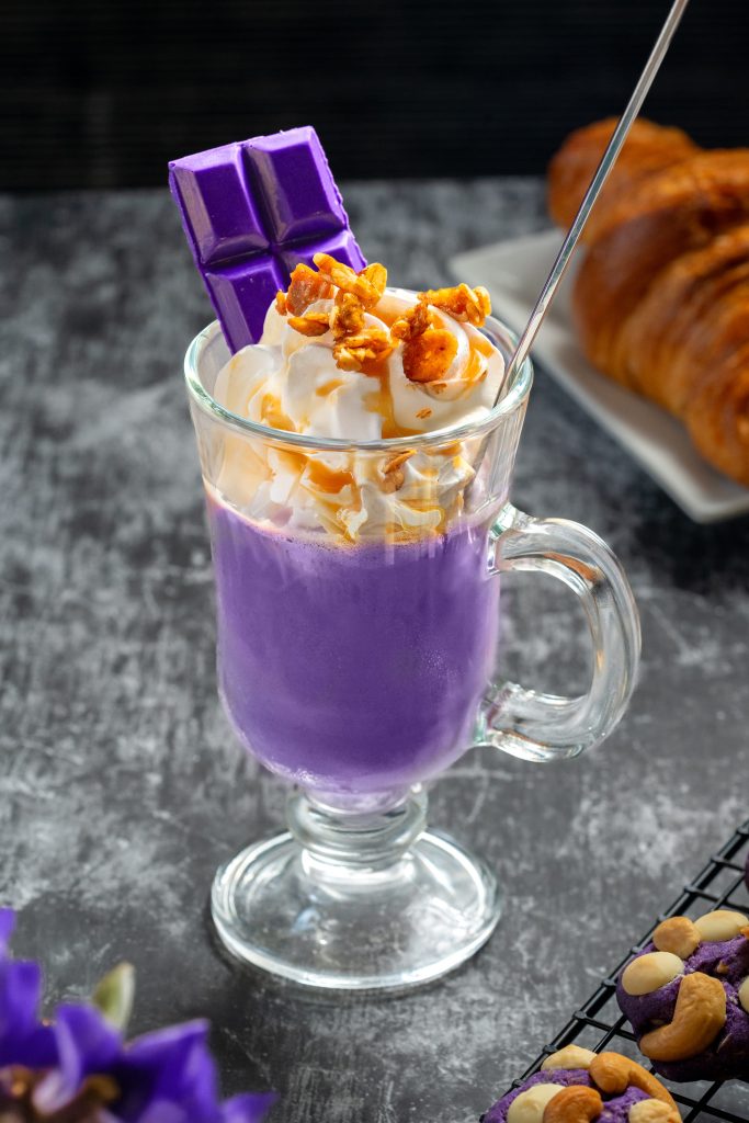 So, why not level up your usual caffeine fix by pairing it with ube? This iced ube caffè latte is infused with ube flavor that blends well with the strong and comforting coffee taste.